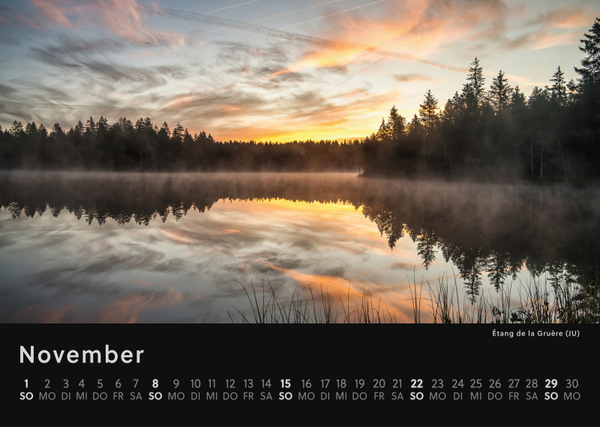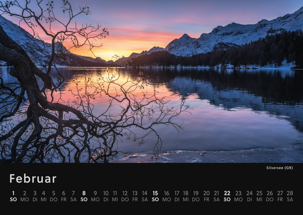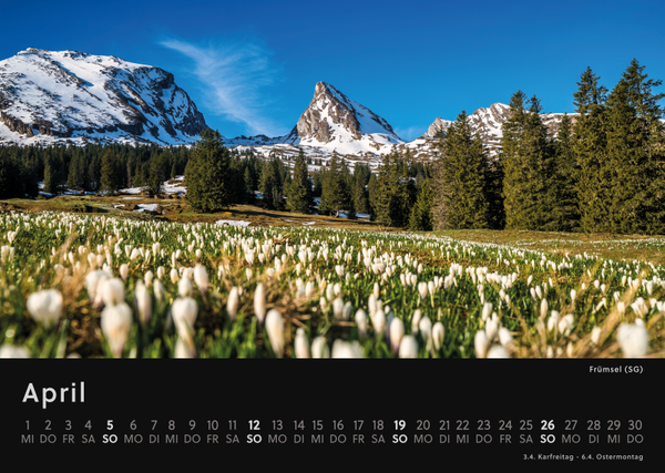 Der Kalender zeigt Aufnahmen der wunderschönen Schweiz.